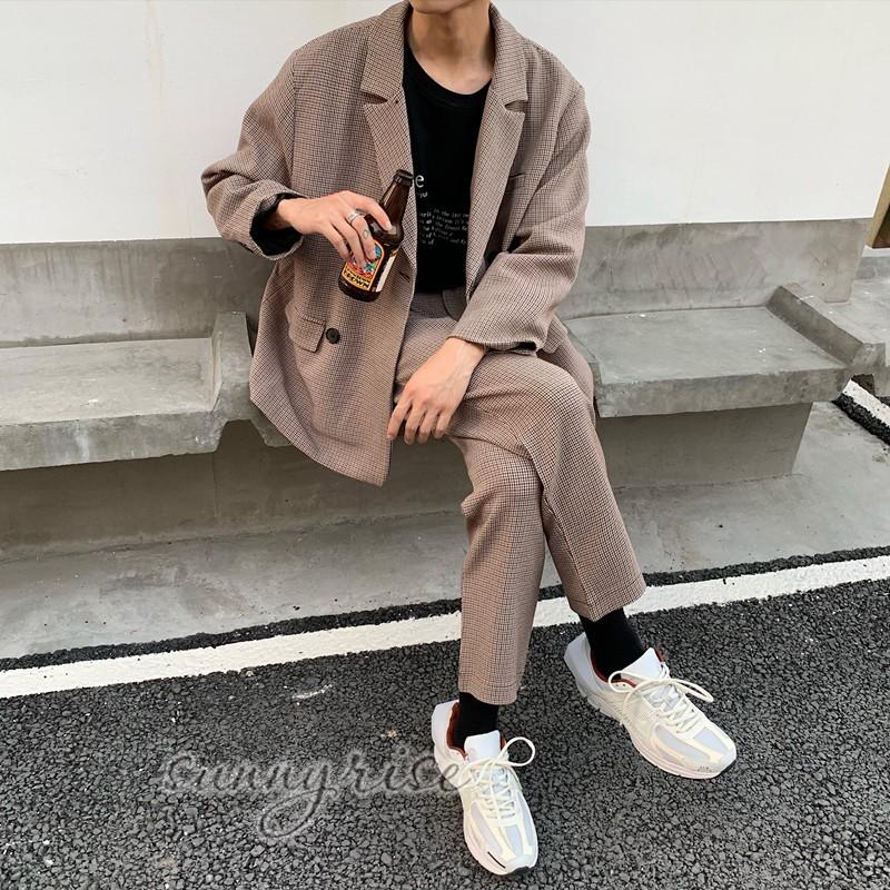 送料無料 レトロ チェック テーラードジャケット セットアップ ストリート 韓国 セット パンツ ビックシルエット メンズ 大きめ ジャケット El Hkhshop 通販 Yahoo ショッピング